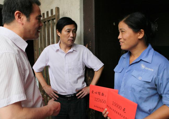 8月1日上午,集團倪阿泉、單寶子、高小林等領(lǐng)導(dǎo)在供水公司領(lǐng)導(dǎo)的陪同下專程前往錢清看望慰問了供水公司柯西分公司家庭受災(zāi)職工莫煜君,為她送去了集團干部職工的愛心款127650元及集團公司的資助款10000元,表達集團及干部職工的關(guān)愛之情。莫煜君連聲道:“謝謝集團公司,謝謝領(lǐng)導(dǎo)關(guān)心……”感激之情溢于言表。 同時,倪董事長希望莫煜君振奮精神,早日度過難關(guān),重建家園。