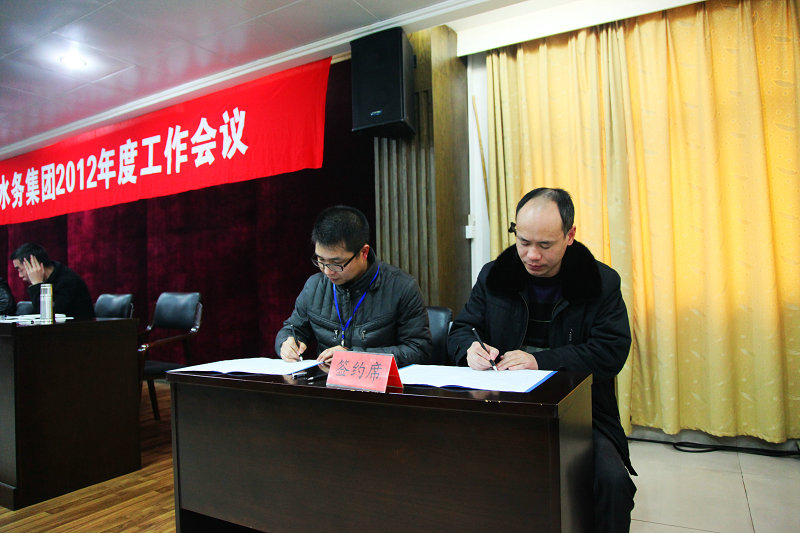 圖為集團(tuán)與江濱水處理公司簽訂2012年度安全生產(chǎn)責(zé)任狀