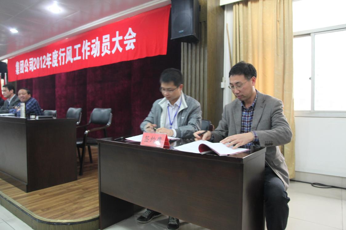 會上,集團公司黨委副書記、紀委書記高小林作行風工作動員,他全面總結了去年行風工作所取得的成績和存在的不足,客觀分析了所面臨的考驗和壓力。同時,提出了今年行風建設總體目標和工作要求。隨后,集團副總經理馮梁峰與下屬各單位、各部室簽訂了《2012年度行風建設目標管理責任書》。