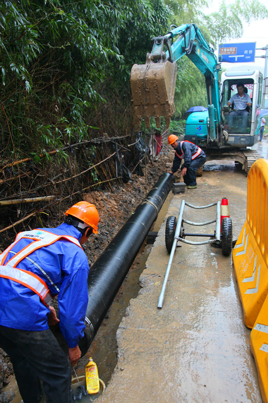 山區(qū)農(nóng)村小舜江飲用水工程湖塘總管施工現(xiàn)場(chǎng)
