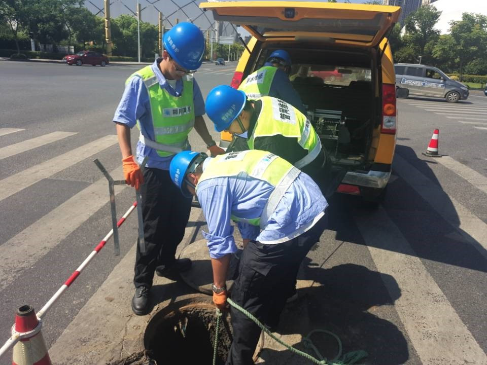 為了保證雷暴天氣不對路面造成影響,排水公司養(yǎng)護(hù)班同志們對管道一一檢測。