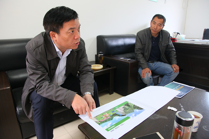 周董事長(zhǎng)與官橋村委主任黃湯榮研究該村規(guī)劃設(shè)計(jì)方案