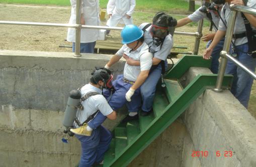 舉行“有限空間作業暨污泥管爆管”應急預案演習