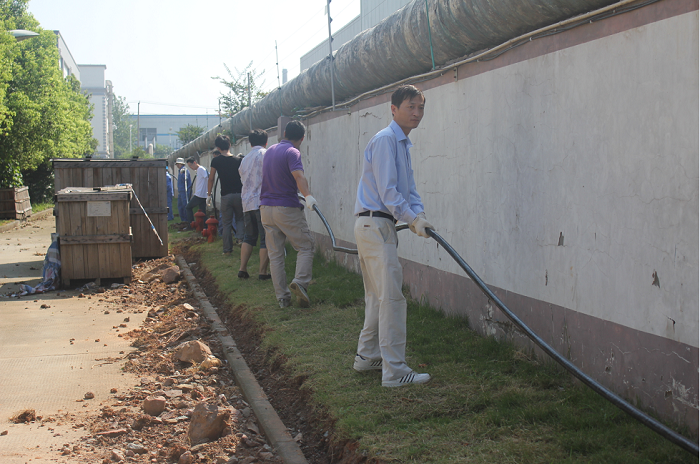 當天氣溫高達35℃,酷暑并沒有消褪黨員們的工作勢情,大家分組結隊搬運電纜、為管溝覆土,勞動現場呈現出一派熱火朝天的景象。在同志們的共同努力下,僅一個小時就完成了長300米、近2噸重的電纜鋪設工作。參加本次義務勞動的既有黨員,也有部分入黨積極分子、黨校培訓班學員,大家用實際行動詮釋了共產黨員的先進性。