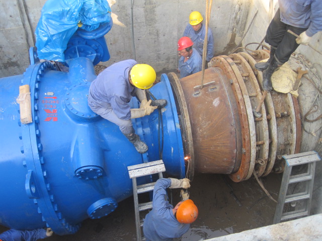 鳳凰山泵站原DN1400閥門,因使用時間長,部分零部件損壞,導致電動操控失靈,手動關(guān)閉困難,安全隱患較大,經(jīng)公司領(lǐng)導研究決定,由安裝分公司負責對此處閥門進行更換,并安裝調(diào)流閥。該調(diào)流閥的成功安裝,將方便小舜江一期總管水壓及流量的調(diào)控,為應對今年高峰供水做好了準備工作。