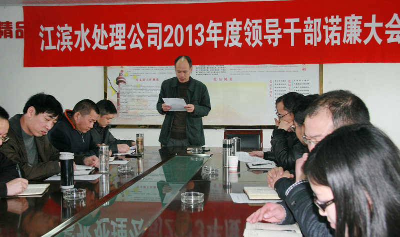 3月26日下午,江濱水處理公司2012年度領導干部諾廉大會在二樓會議室舉行,黨支部書記傅小春主持會議,公司中層正職以上干部共計9人結合自身工作崗位,就如何加強廉潔自律意識、做好廉政風險防控做出承諾,接受職工監(jiān)督。