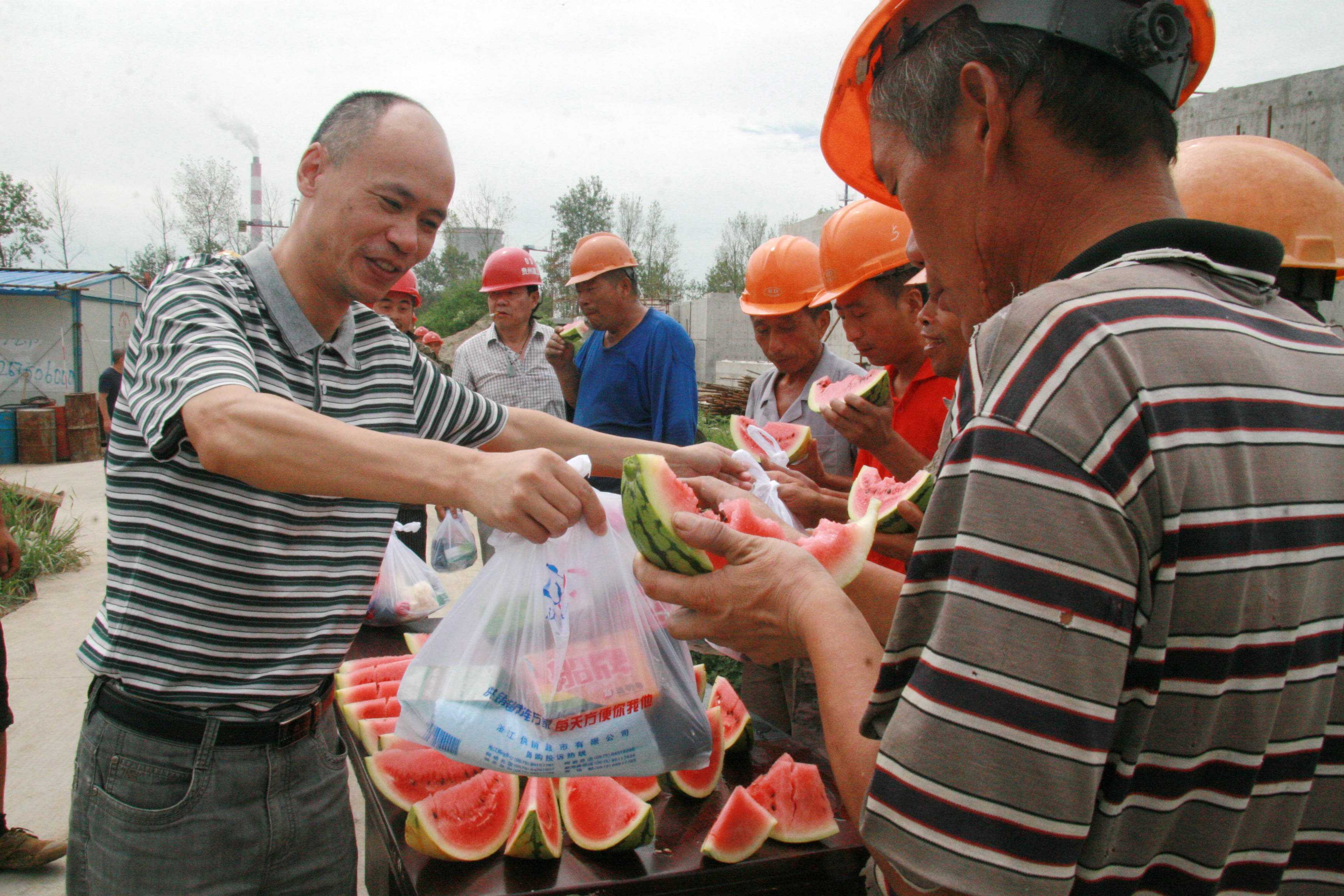 江濱水處理公司負責人看望慰問高溫堅守崗位的一線工人,送上毛