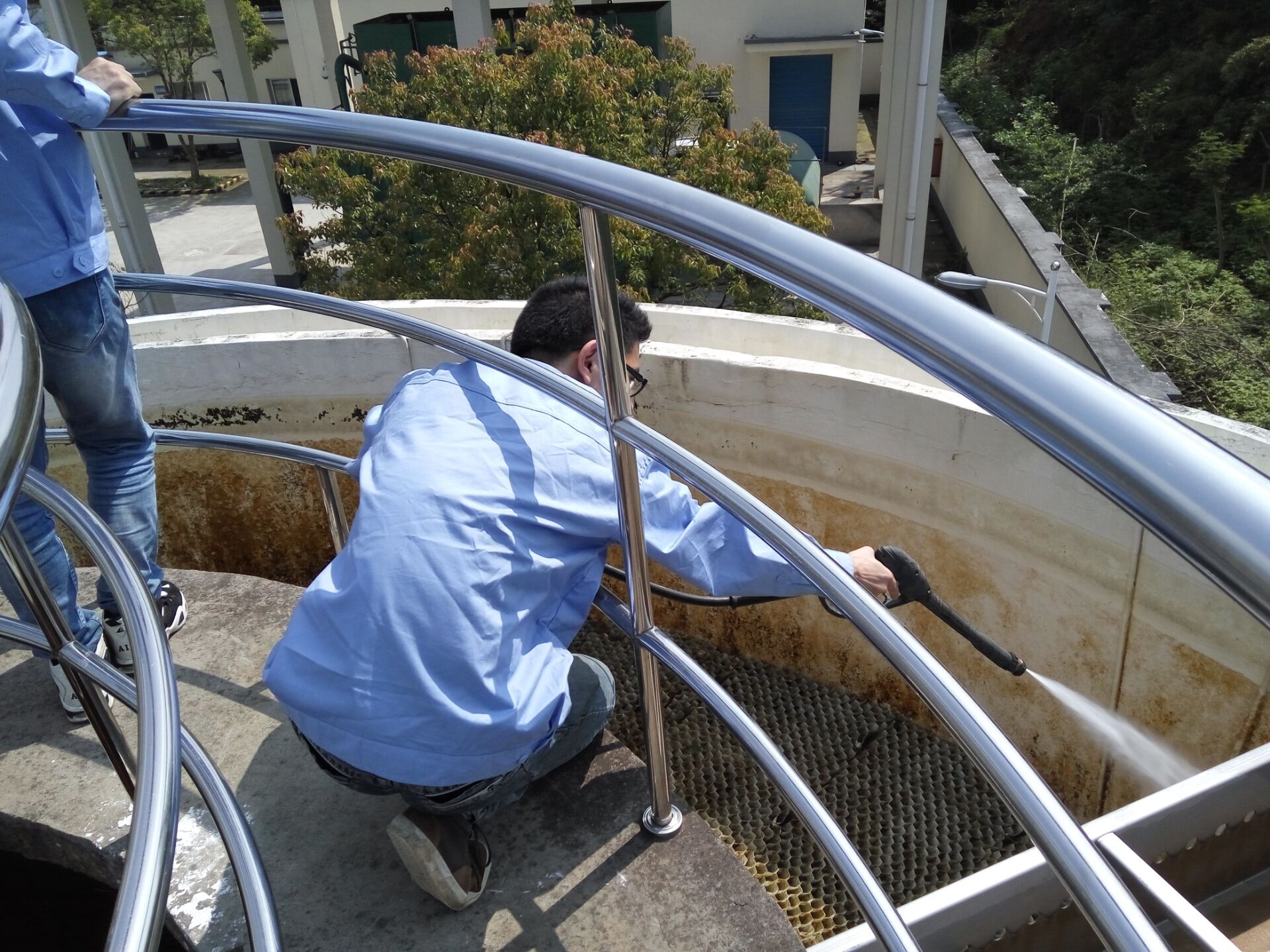 日上午,柯東分公司組織人員對王壇水廠澄清池進行了清洗工作。